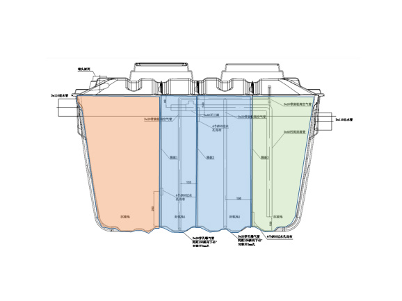 污水處理設(shè)施僅處理灰水,可大大提高后續(xù)單元污水處理效果,顯著減小設(shè)施容積,進(jìn)而降低建設(shè)和運(yùn)行成本。黑水單獨(dú)收集處理,將其轉(zhuǎn)變?yōu)楦咝в袡C(jī)肥,實(shí)現(xiàn)對(duì)部分化肥的替代。針對(duì)部分農(nóng)戶化糞池建設(shè)條件不足的情況,可在設(shè)備前端設(shè)計(jì)沉渣池替代化糞池功能。