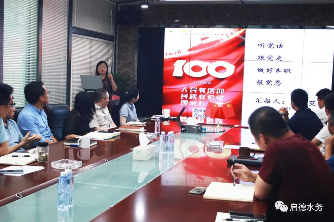 7月3日下午,江蘇啟德水務有限公司慶祝中國共產黨成立100周年暨“我為啟德傳幫帶”學習分享活動,觀看慶黨100周年視頻、發(fā)布啟德人宣言、主題學習分享等多種方式重溫黨的百年奮斗歷程、汲取強大力量。公司經營班子、各中心負責人、黨員代表和部分骨干員工參加活動,活動由總經理助理陸緒科主持。