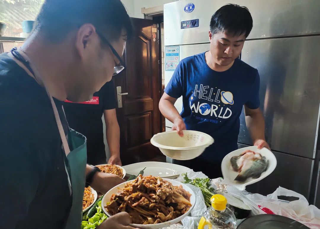 本次活動主張自己動手制作佳肴,體驗勞動的過程以及在勞動過程中的樂趣為主??偨?jīng)理助理陸緒科作為本次活動的組織者,精心準備了所有食材。到達目的地后,大家立即開工,洗菜、切菜、調(diào)料、炒菜,忙得不亦樂乎。隨之香味四溢的美食把大家的熱情燃燒起來了,無私的分享,無形中增加了同事們之間的感情,提高了大家團結(jié)和默契。