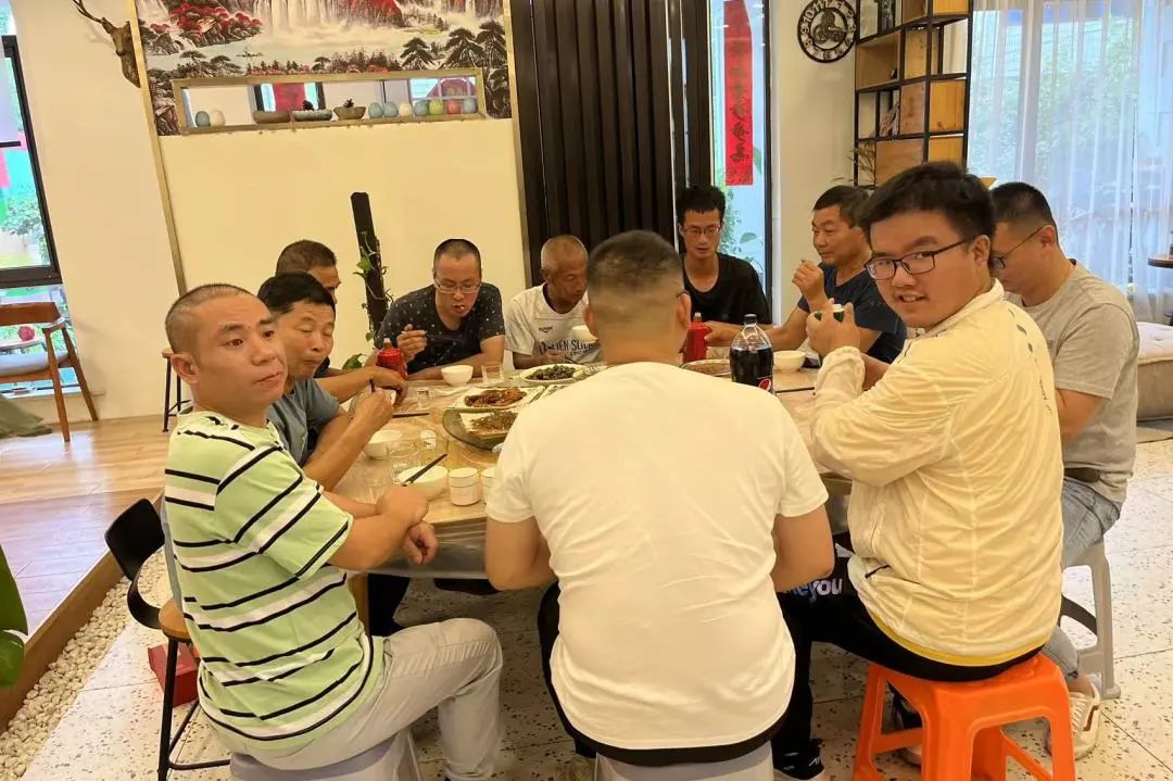 一道道香氣四溢的菜肴陸續(xù)出鍋上桌了,每道菜肴里都包含著大家的辛勤勞動。整個餐會氣氛活潑熱烈,大家都沉浸在這濃情溫暖的氛圍中。
