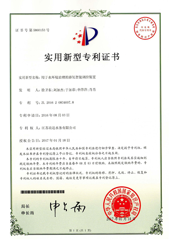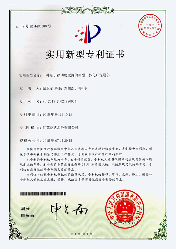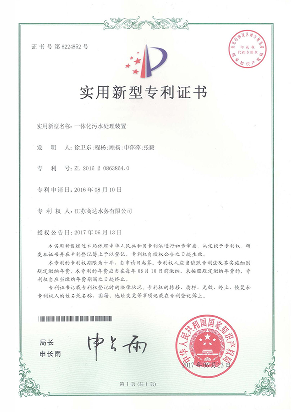 實(shí)用新型專利證書 第6224852號(hào)