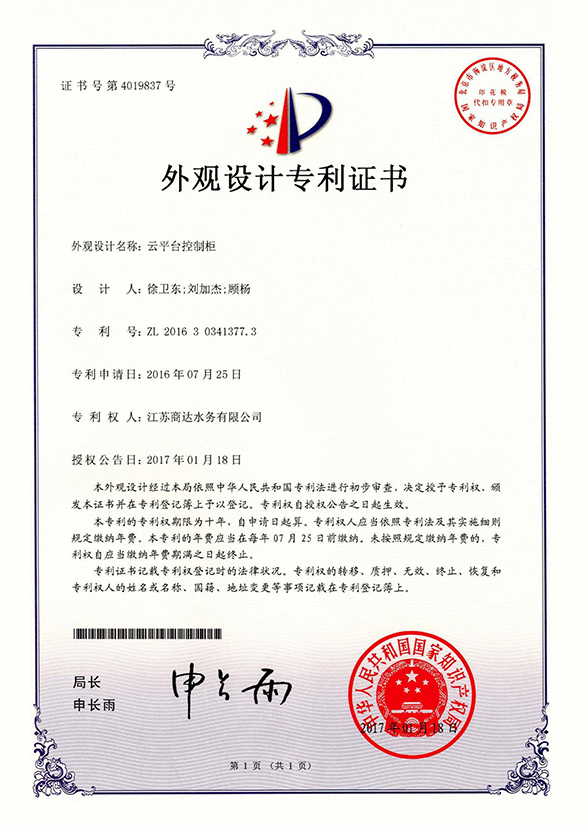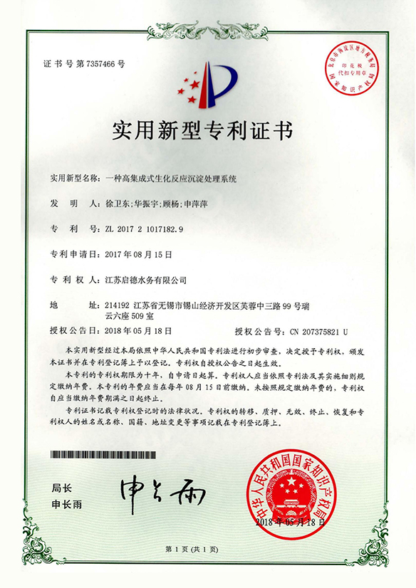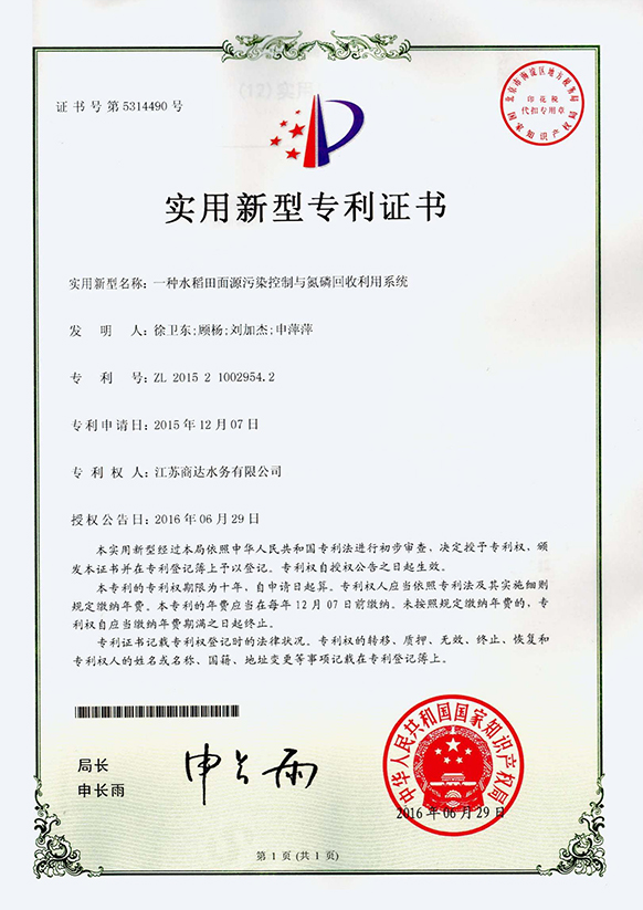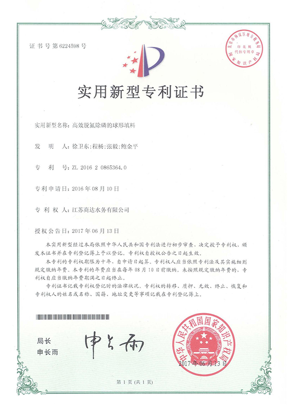 實(shí)用新型專利證書 第6224598號(hào)